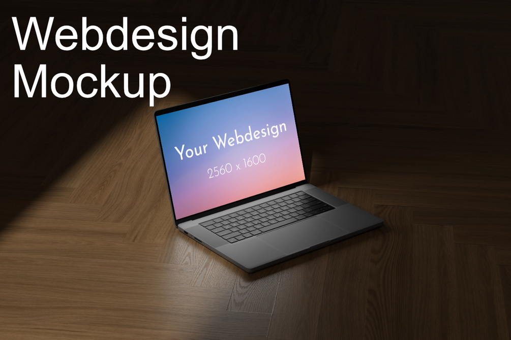 Web Design Mockup Macbook Wood Floor Dark